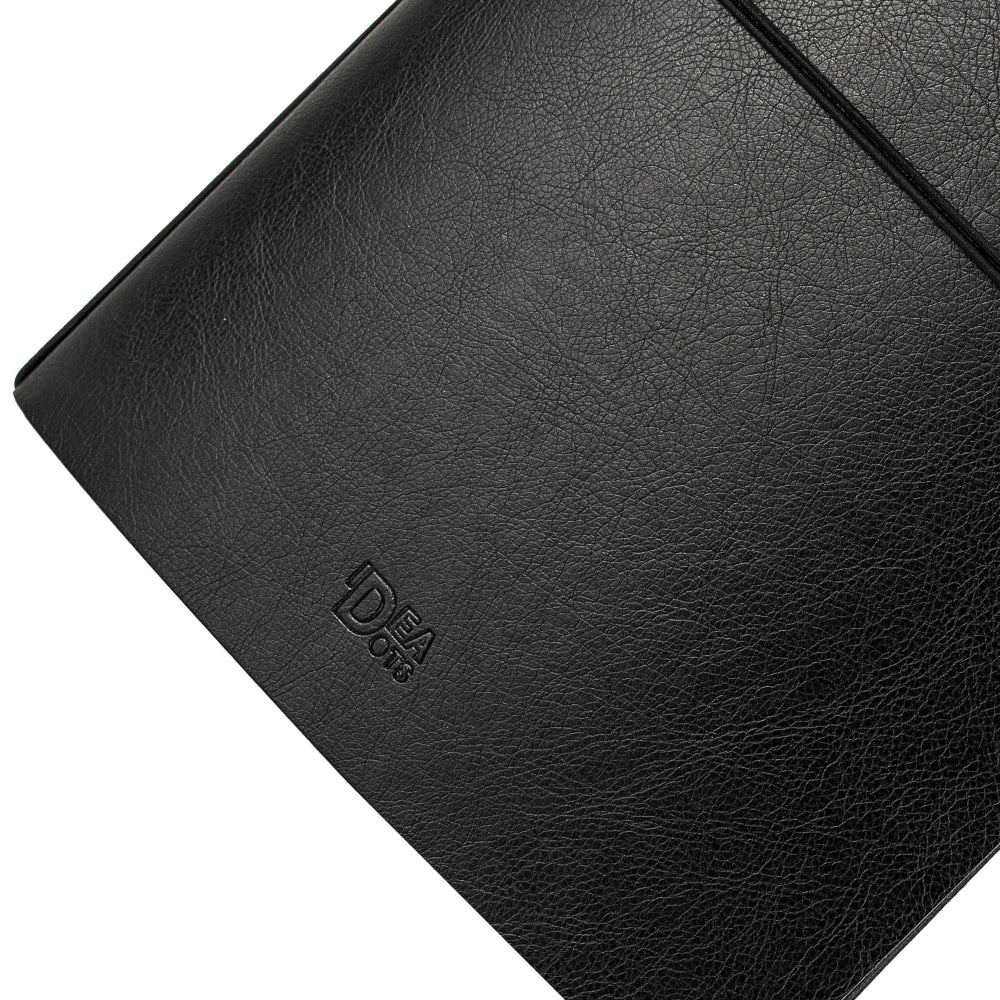 Klasikinės juodos spalvos eko odos aplankalas, pritaikytas A4 sąsiuviniams. Elegantiškas, universalus ir solidus – tinka tiek verslui, tiek asmeninėms idėjoms.