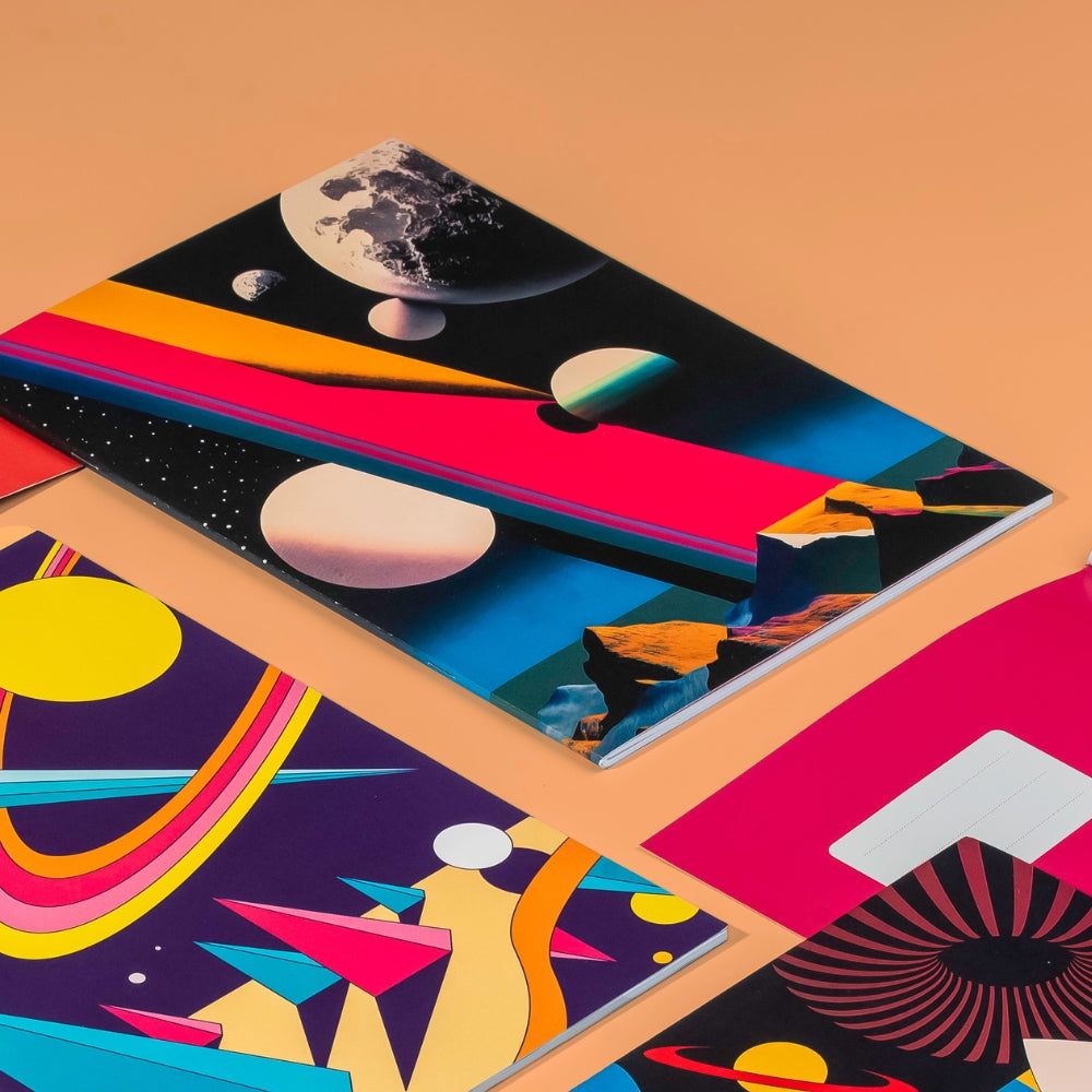 Spalvingas, drąsus ir šiek tiek chaotiškas dizainas – tarsi proto pjūvis, kuriame susikerta visatos idėjos. Šis sąsiuvinis skatina drąsiai mąstyti ir rašyti, ką jauti.