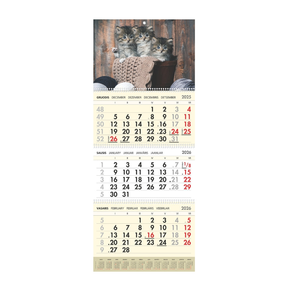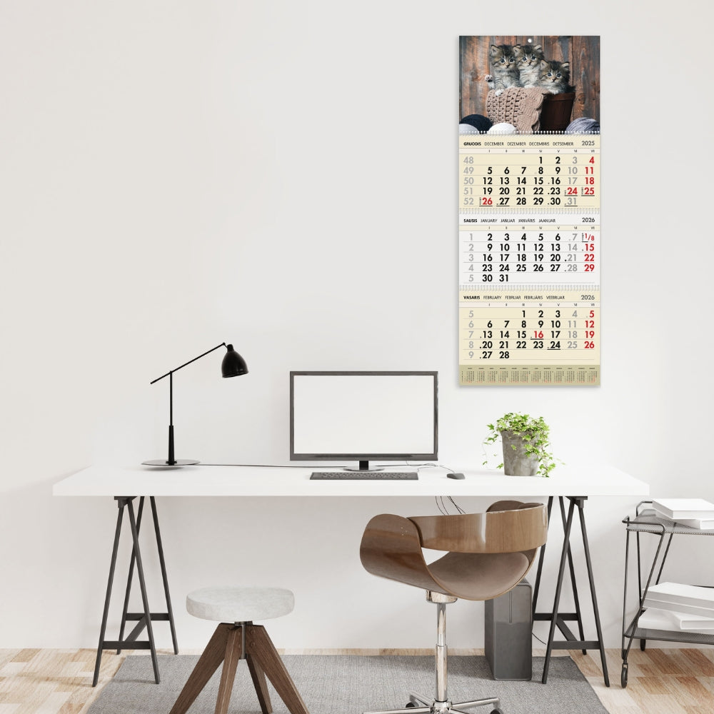 Trijų dalių kalendorius pritaikytas Jūsų gyvenimo ritmui. Jis sukurtas iš aukštos kokybės medžiagų – tvirtas, elegantiškas ir patogus naudoti. Popierius glotnus, spalvos sodrios, o jį puošiančios fotografijos – tai mažos kelionės, kurios nukels į geriausias emocijas kiekvieną dieną!