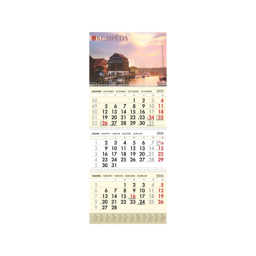 - Trijų dalių sieninis kalendorius 2026 m.