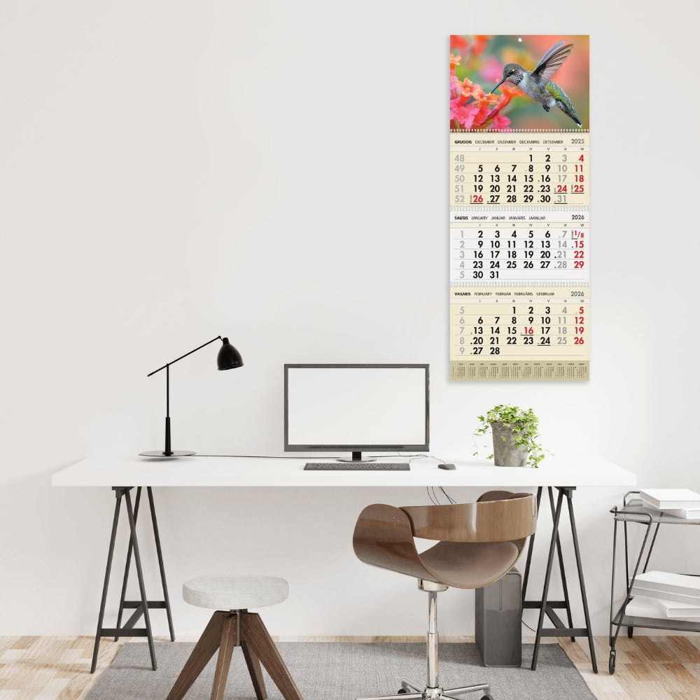 Trijų dalių kalendorius pritaikytas Jūsų gyvenimo ritmui. Jis sukurtas iš aukštos kokybės medžiagų – tvirtas, elegantiškas ir patogus naudoti. Popierius glotnus, spalvos sodrios, o jį puošiančios fotografijos – tai mažos kelionės, kurios nukels į geriausias emocijas kiekvieną dieną!