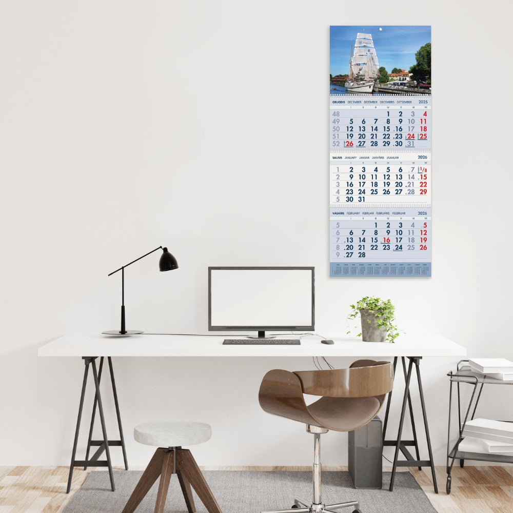 Trijų dalių kalendorius pritaikytas Jūsų gyvenimo ritmui. Jis sukurtas iš aukštos kokybės medžiagų – tvirtas, elegantiškas ir patogus naudoti. Popierius glotnus, spalvos sodrios, o jį puošiančios fotografijos – tai mažos kelionės, kurios nukels į geriausias emocijas kiekvieną dieną!