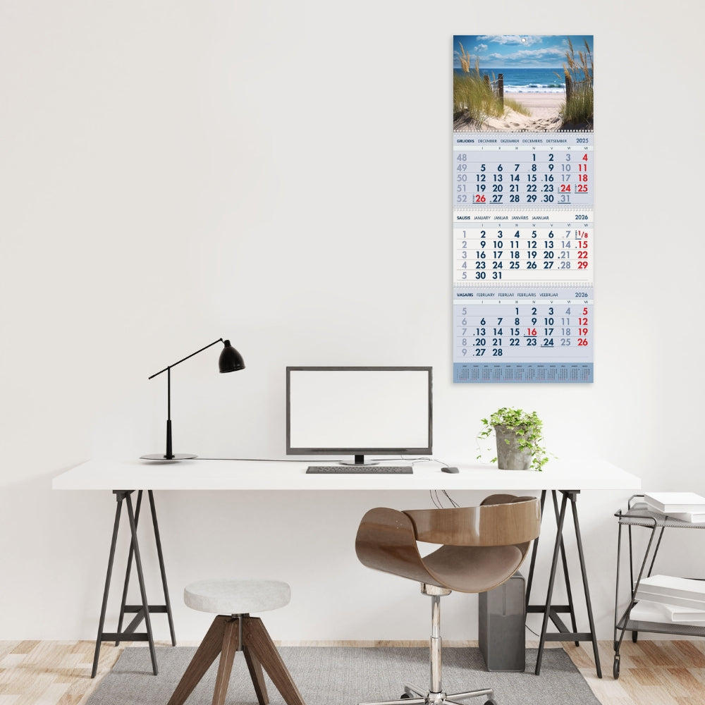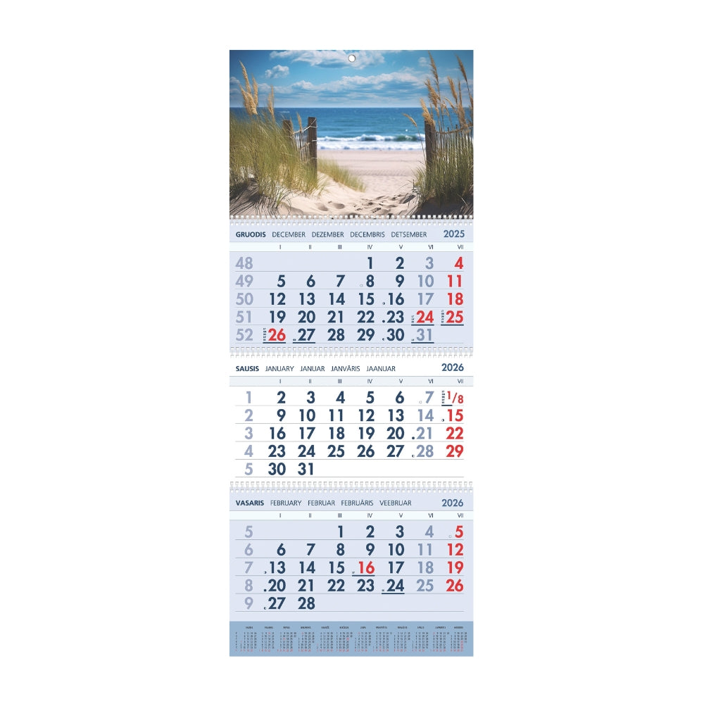 Trijų dalių kalendorius pritaikytas Jūsų gyvenimo ritmui. Jis sukurtas iš aukštos kokybės medžiagų – tvirtas, elegantiškas ir patogus naudoti. Popierius glotnus, spalvos sodrios, o jį puošiančios fotografijos – tai mažos kelionės, kurios nukels į geriausias emocijas kiekvieną dieną!