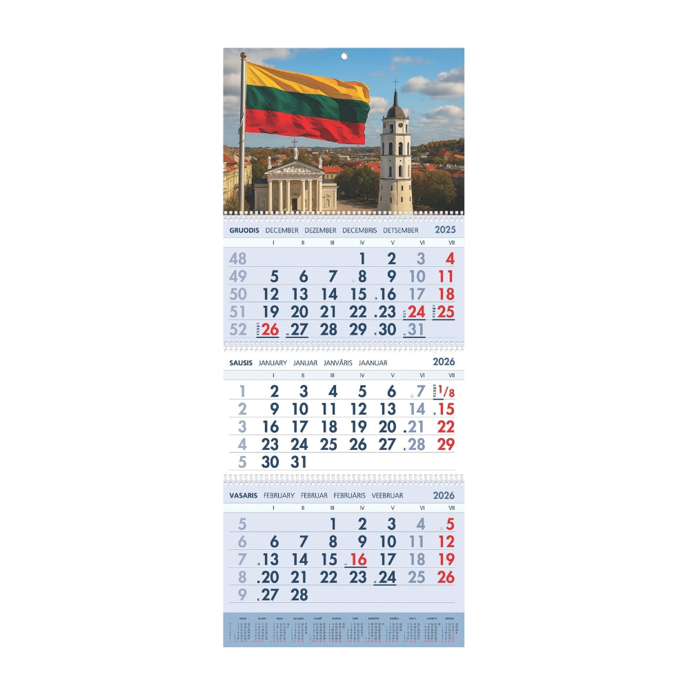- Trijų dalių sieninis kalendorius 2026 m.
