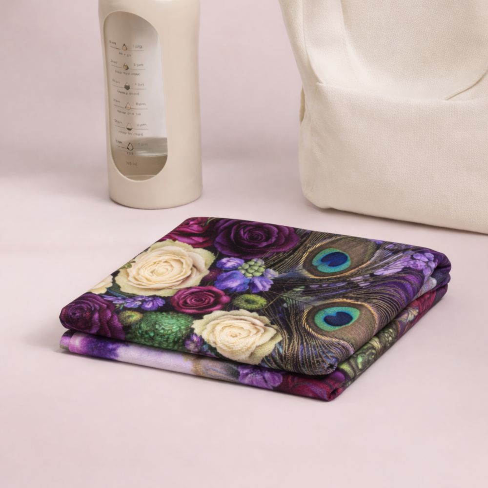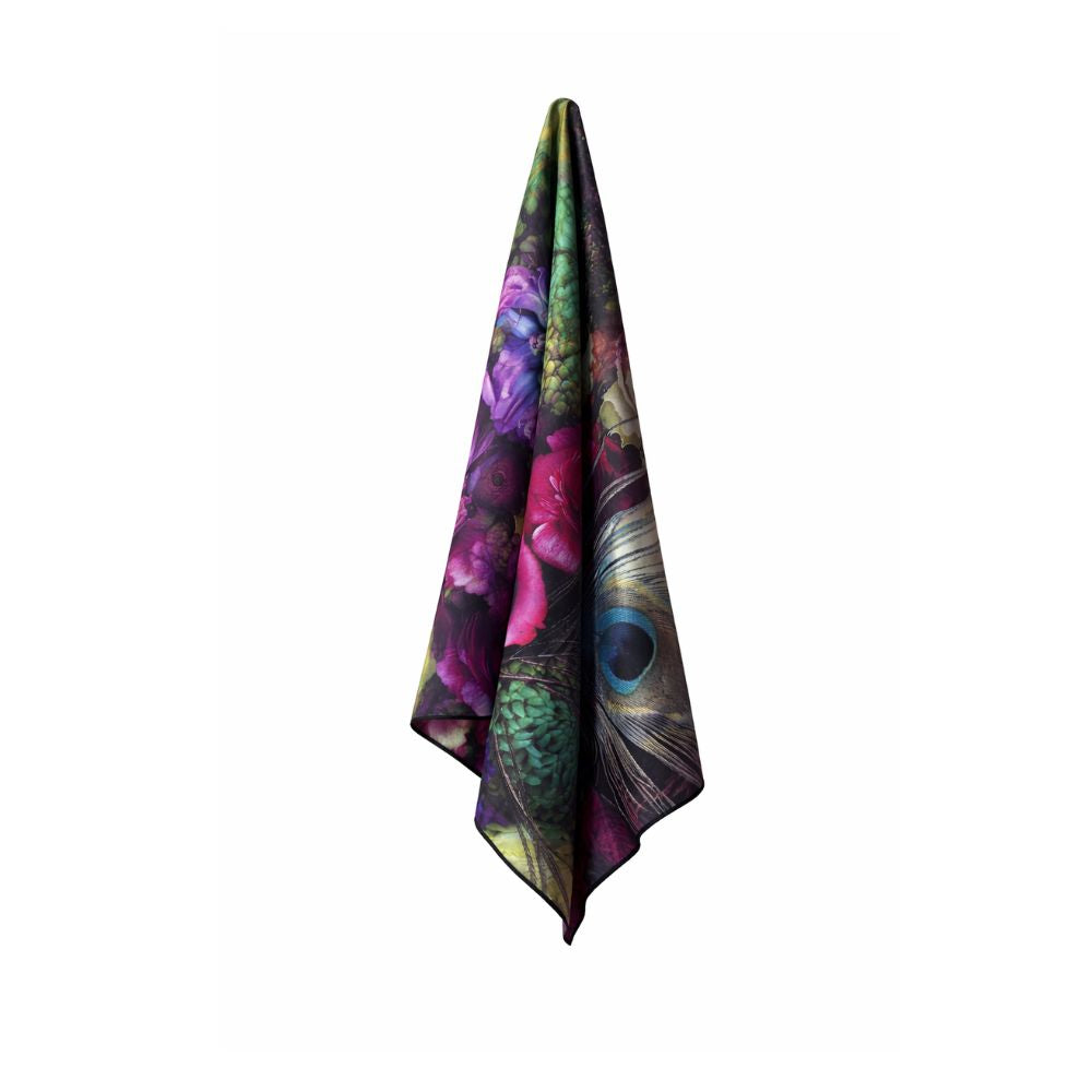 Šis rankšluostis – tarsi sėkmės talismanas, įkvėptas paslaptingos povo plunksnos grožio. „Sėkmės plunksna“ spinduliuoja gylį, prabangą ir išskirtinumą – sodrios spalvos, žiedų elegancija ir plunksnos akcentai kuria harmoningą, magišką kompoziciją.